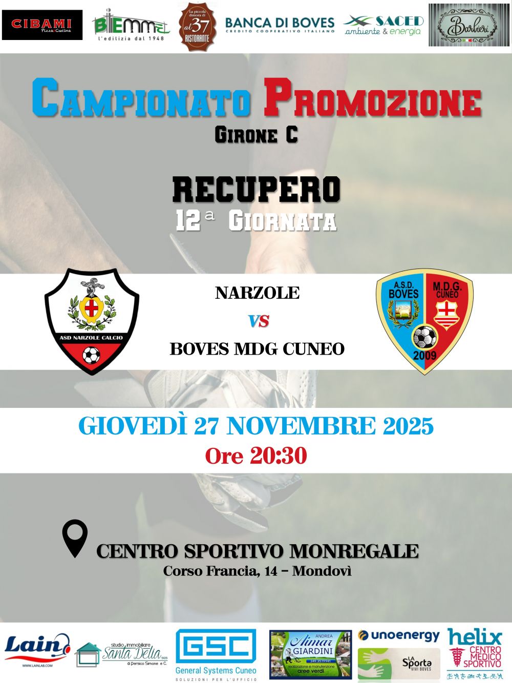 PROMOZIONE, GIOVEDI' 27 IL RECUPERO CONTRO IL NARZOLE